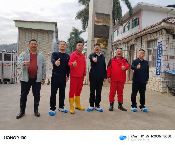 12月24日,湖南农业集团党委书记、董事长龚小波赴湖南新五丰股份有限公司(以下简称“新五丰”)深圳分公司、惠州分公司调研指导,集团党群综合部部长李三阳,新五丰党委委员、副总经理韩伟陪同。