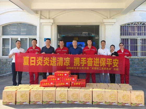 为扎实巩固拓展“我为群众办实事”实践活动成果,做好职工关心关爱与防暑降温工作,保障广大一线职工安全健康权益,7月31日,正值高温酷暑时节,湖南新五丰股份有限公司(以下简称“新五丰”)党委书记、董事长万其见前往生物科技分公司开展“关爱职工·夏送清凉”慰问活动。新五丰党委委员、监事会主席、工会主席毛鸥陪同。