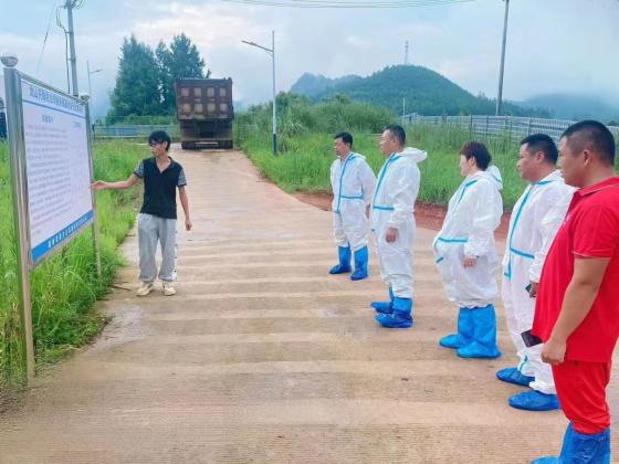 为进一步强化高温雨季天气非洲猪瘟等动物疫病防控工作,切实保障公司生产安全和职工身心健康,督促做好防暑降温工作,7月9日至13日,湖南新五丰股份有限公司(以下简称“新五丰”)党委副书记、副董事长、总经理朱永胜赴益阳、常德、湘西和怀化等地区,先后对公司所属15家养殖场和1家饲料厂开展调研,新五丰党委委员、天心种业党总支书记、总经理龚自冶陪同。