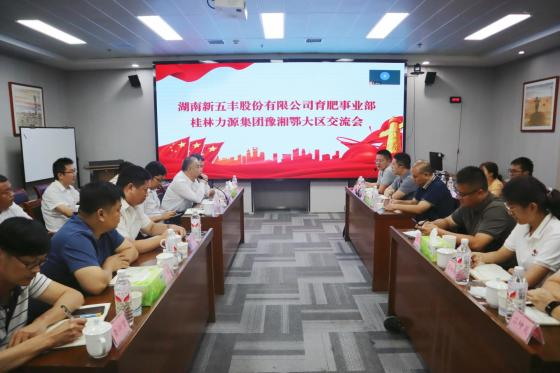 6月26日下午,桂林力源集团豫湘鄂大区总经理蒋炳福一行到湖南新五丰股份有限公司(以下简称“新五丰”)育肥事业部考察交流。新五丰党委书记、董事长万其见,新五丰党委委员、天心种业党总支书记、总经理龚自冶,天心种业党总支委员、副总经理唐威参加交流会,会议由新五丰总经理助理李锦林主持。