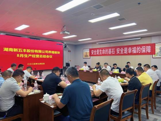 9月5日,湖南新五丰股份有限公司(以下简称“新五丰”)在衡阳事业部召开养殖板块8月生产经营会议。新五丰党委书记、董事长万其见,党委副书记、副董事长、总经理朱永胜出席会议并讲话,新五丰党委委员、养殖事业部总经理唐威主持会议。
