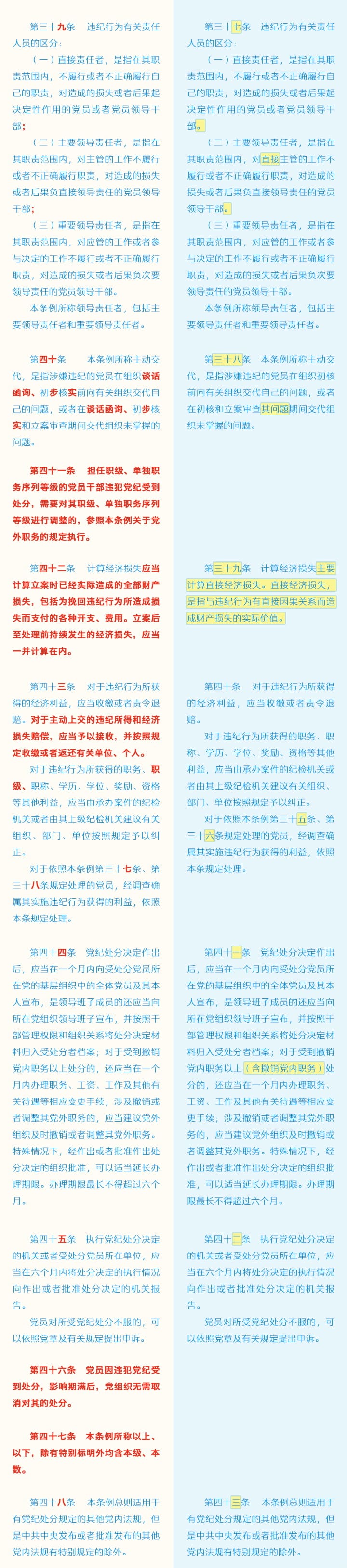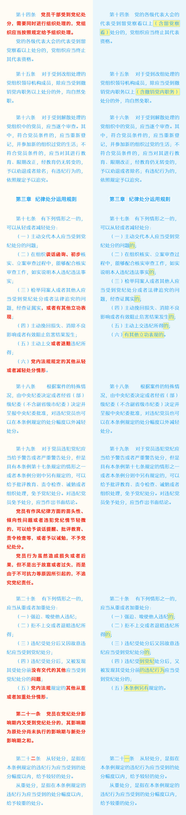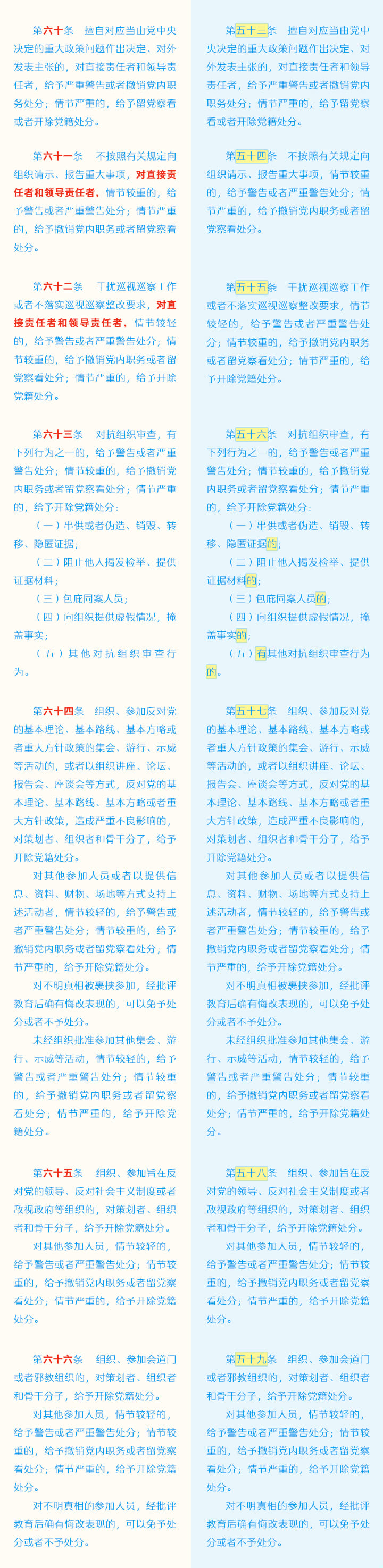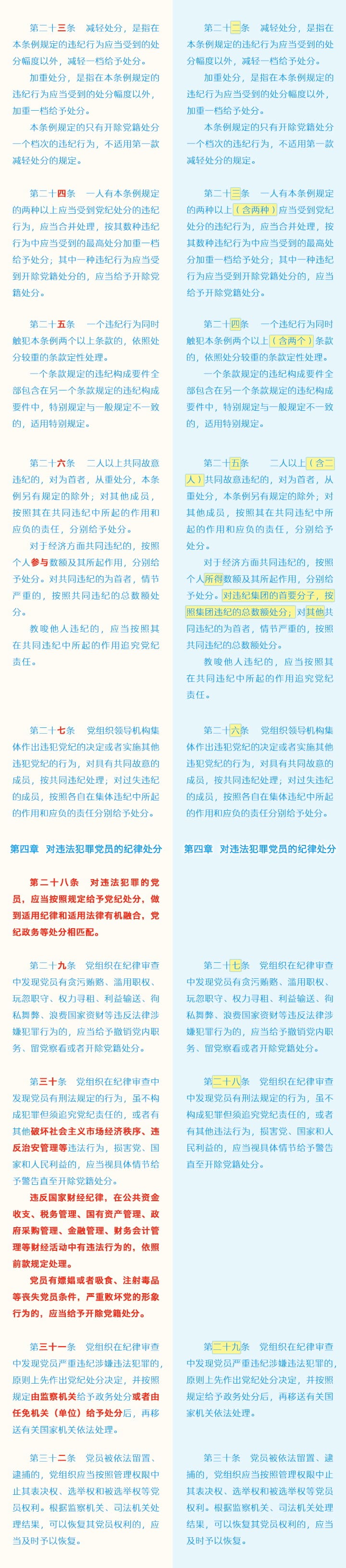 《中国共产党纪律处分条例》修订条文对照表