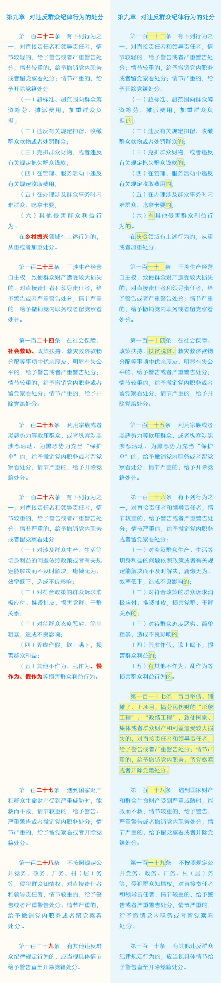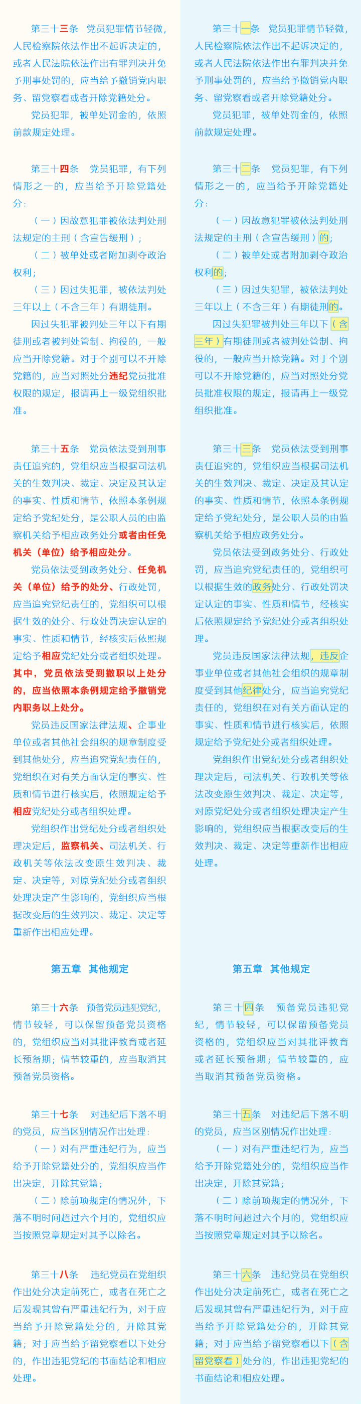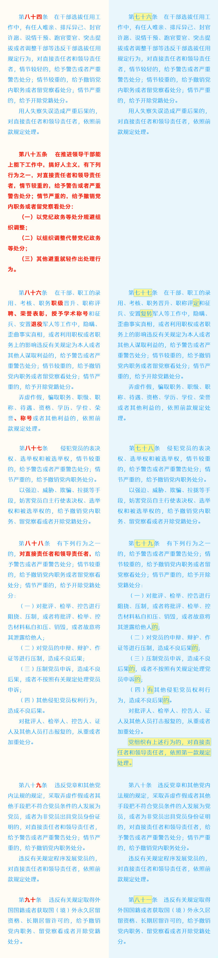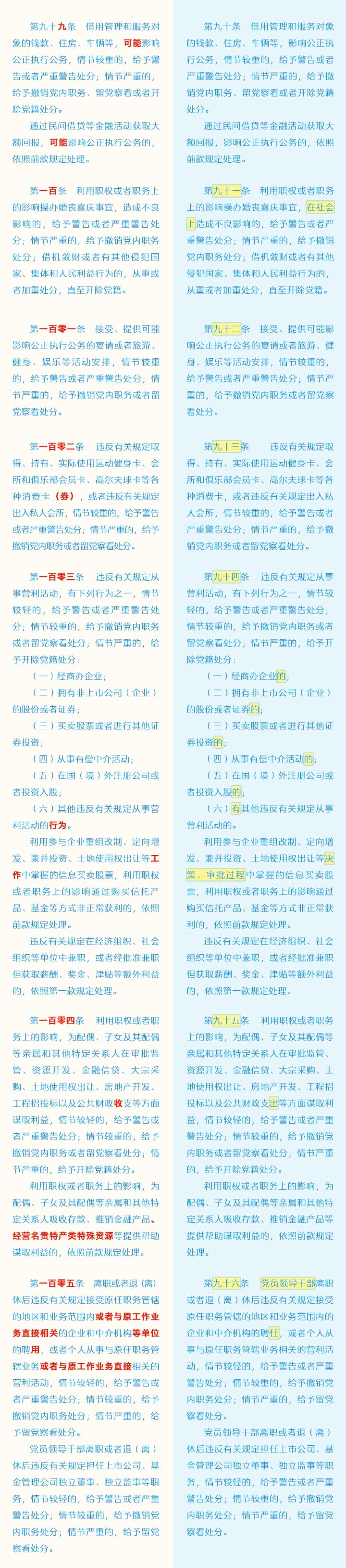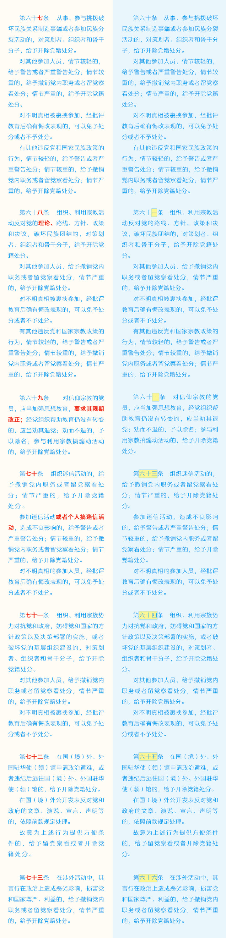 《中国共产党纪律处分条例》修订条文对照表