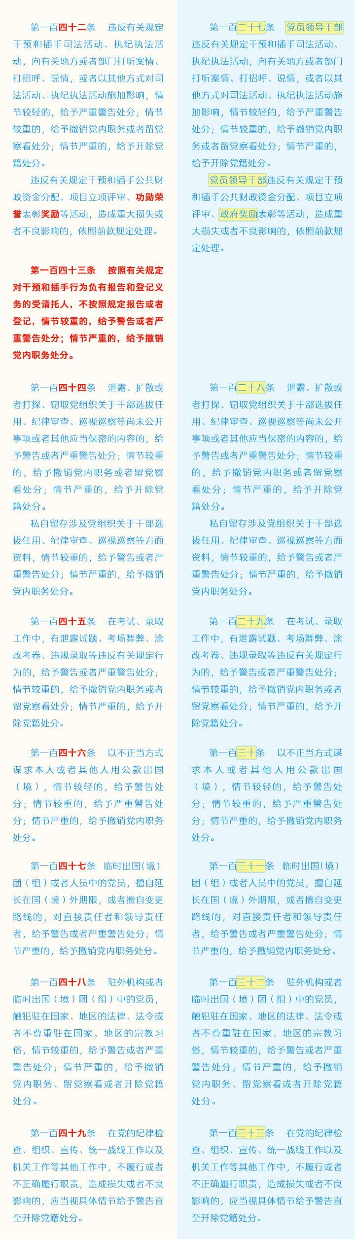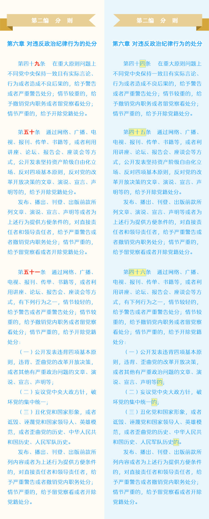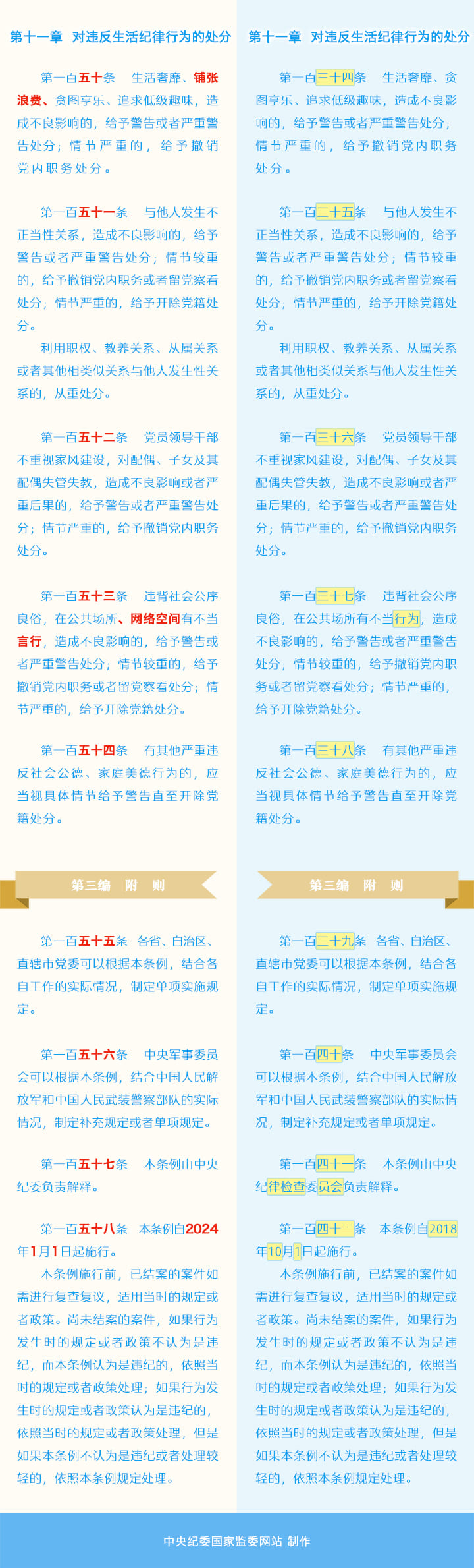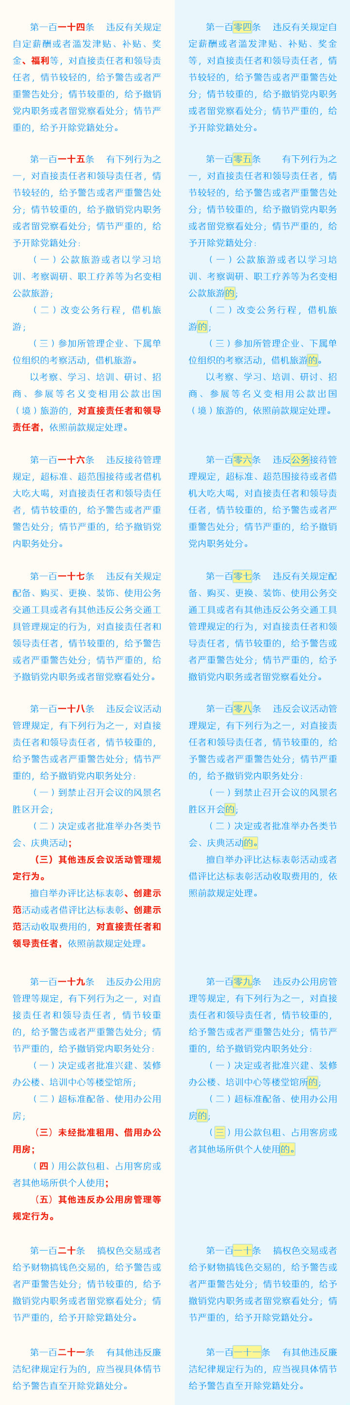 《中国共产党纪律处分条例》修订条文对照表