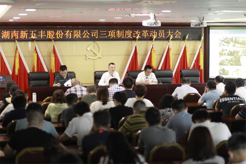 5月18日,湖南新五丰股份有限公司召开深化三项制度改革动员大会,会议由公司党委副书记、副董事长、总经理刘艳书主持,公司党委书记、董事长何军出席会议并做动员讲话,公司党委委员、副总经理毛鸥宣读了三项制度改革的实施内容和推进计划。