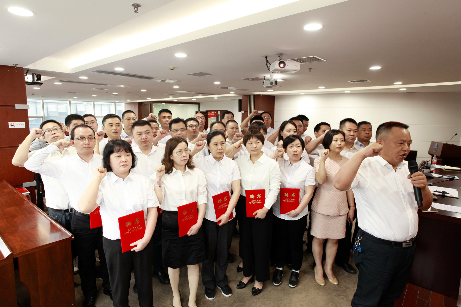 最后,何军和刘艳书分别向新任职的18名中层干部分别颁发了聘书。由刘艳书领誓、何军监誓,全体与会人员面对党旗、国旗进行了庄严的宣誓仪式。