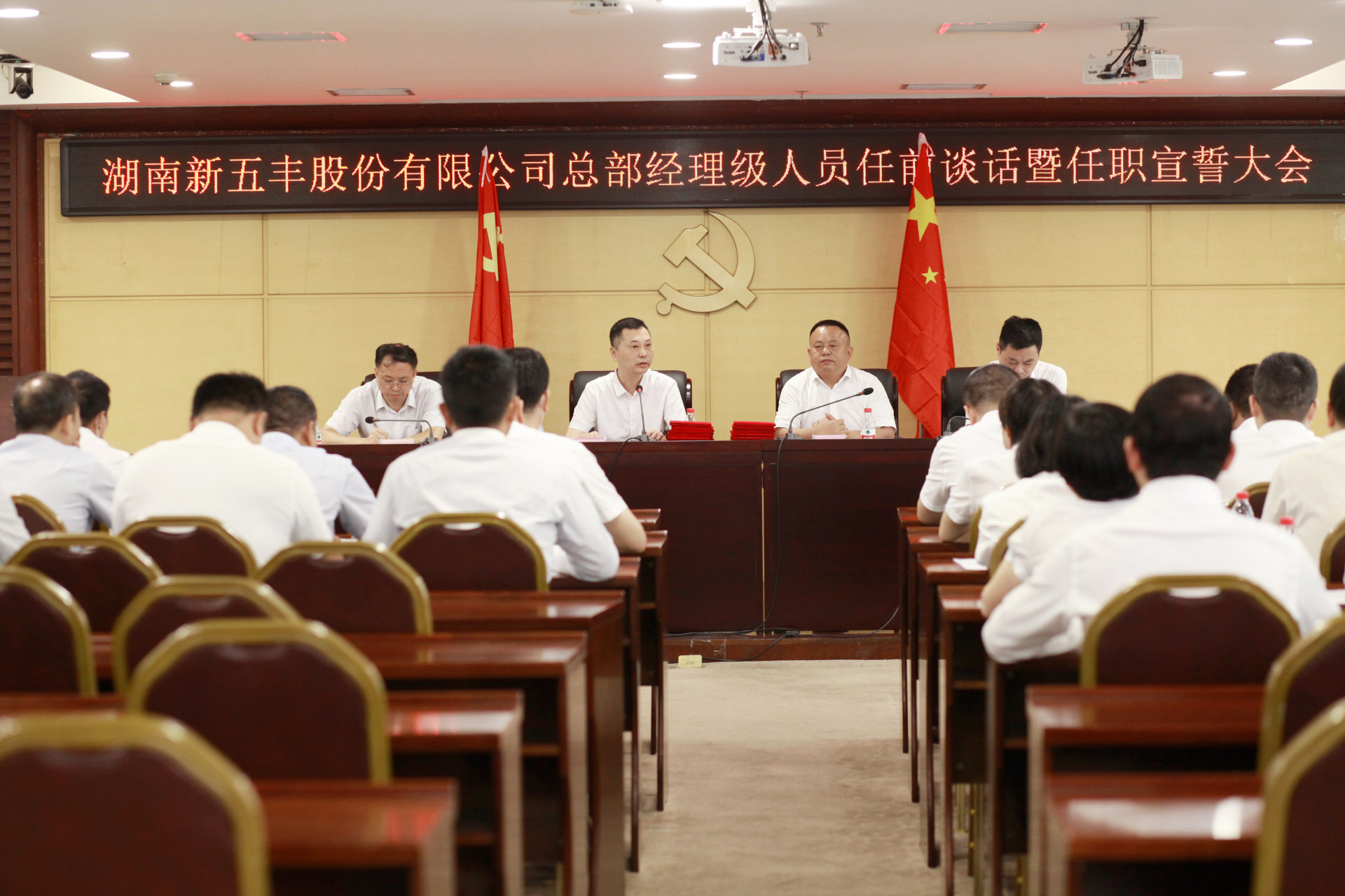 为进一步加强对新任中层干部的管理、教育和监督,增强新任职中层领导干部求真务实、廉洁从业意识,5月27日上午,新五丰股份有限公司(以下简称“新五丰”)对在全公司公开招聘活动中新聘的18名中层干部开展任前集体谈话暨任职宣誓仪式。会议由公司党委委员、副总经理毛鸥主持。