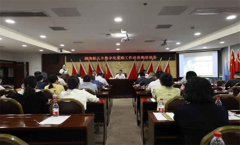 8月11日,湖南新五丰股份有限公司(以下简称新五丰)数字化大企业采购工作动员及培训会在总部举行,会议由采购部李程时黛主持。新五丰党委书记、董事长何军,党委副书记、副董事长、总经理刘艳书,党委委员、纪检组长周学斌出席会议并讲话。