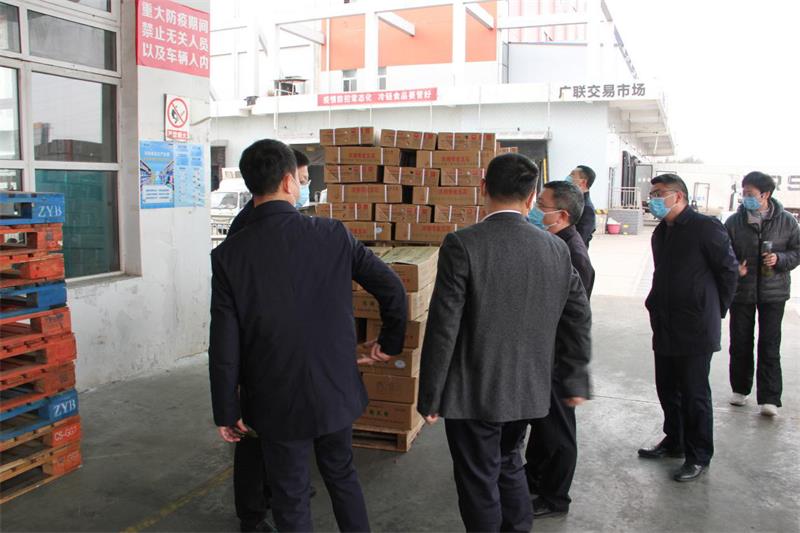 卢光祖一行来到广联公司查阅企业疫情常态化防控工作预案,详细检查冷链食品储存、追溯管理,以及企业防疫物资储备、从业人员防护、现场环境卫生等情况。