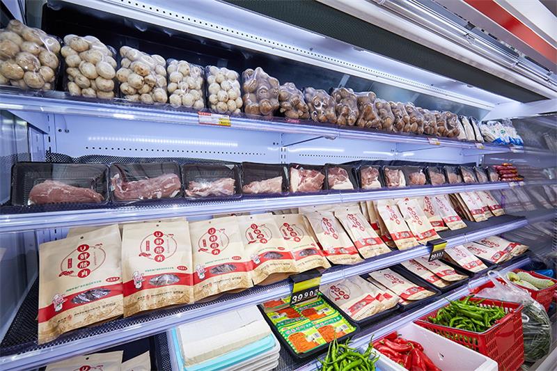开业当天,冰柜里的猪肉按照排骨、五花、前腿肉、后腿肉等不同部位码放整齐。进店内消费的市民络绎不绝,门店现场销售气氛十分火爆。为了迎合本地市场需求,农丰肉品连锁星沙店还引进了丰富的湖南特色产品,包括U鲜品牌的腊肉、香肠等。