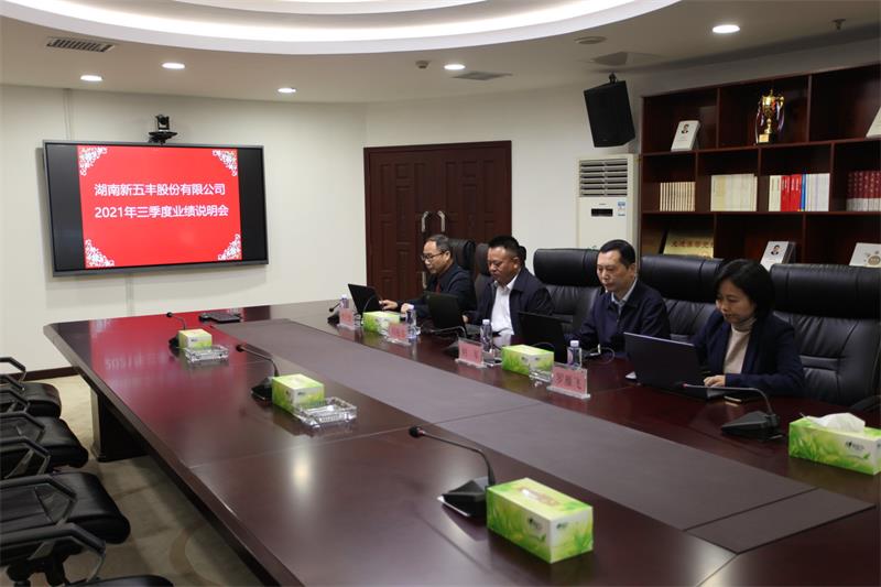 近日,湖南新五丰股份有限公司(以下简称“公司”)通过全景网投资者关系互动平台召开“公司2021年3季度业绩说明会”。公司党委书记、董事长何军,党委副书记、副董事长、总经理刘艳书,财务总监肖立新,董事会秘书罗雁飞参加本次说明会,并与投资者就公司经营业绩情况以及未来发展规划等进行了互动交流。