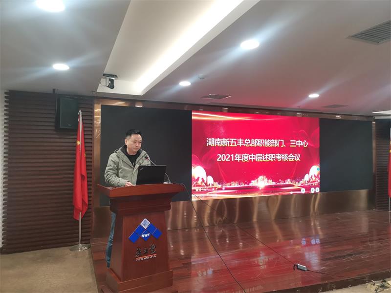 为全面总结评价2021年度各项工作,认真部署2022年度工作安排,围绕“打好增效降本组合拳”实现新五丰高质量发展,2月8日上午,湖南新五丰股份有限公司(以下简称“新五丰”)召开总部职能部门、三中心2021年度中层述职考核会议。党委书记、董事长何军,党委副书记、副董事长、总经理刘艳书出席会议,会议由党委委员、副总经理毛鸥主持。