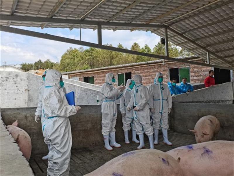 之后,朱光耀一行在新五丰领导和工作人员的陪同下,调研了出口猪只转运至运输车辆的过程,并在监装办公室查看了养殖场监控视频系统。朱光耀详细了解了新五丰活猪出口业务情况、保供情况以及业务受疫情影响状况。他表示,面对新冠疫情和非洲猪瘟的影响,新五丰要严把出口质量关,强化自身防疫措施和疫情监测,履行好保供港澳生猪市场的国企担当和重要责任。长沙海关将为企业做好服务,帮助企业解决出口当中遇到的实际问题。