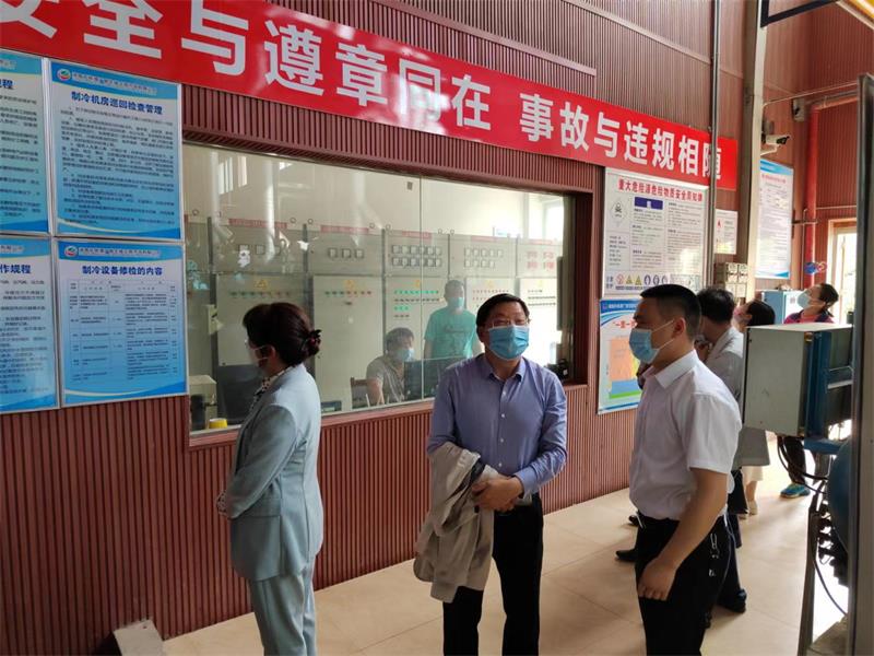 刘少君一行首先来到广联公司生产车间和设备机房,现场检查了设备运行、用电安全和食品卫生管理状况,详细了解新冠肺炎疫情防控工作开展情况。