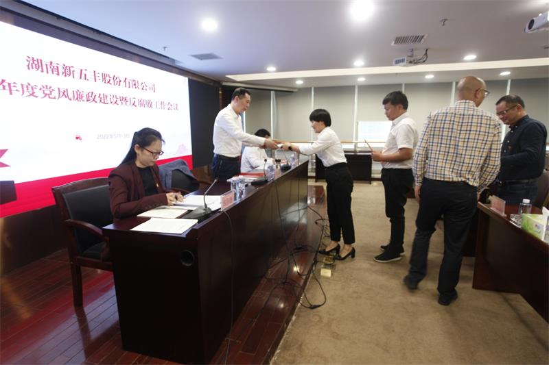 5月13日,湖南新五丰股份有限公司(以下简称“新五丰”)召开2022年度党风廉政建设暨反腐败工作会议,学习传达党的十九届中纪委六次全会、十二届省纪委二次全会精神及省现代农业集团党风廉政建设暨反腐败工作会议精神,总结新五丰2021年党风廉政建设和纪检工作,安排部署2022年工作任务。新五丰党委书记、董事长何军,党委副书记、副董事长、总经理刘艳书,党委委员、纪检组长欧阳静参加会议。会议由刘艳书主持。