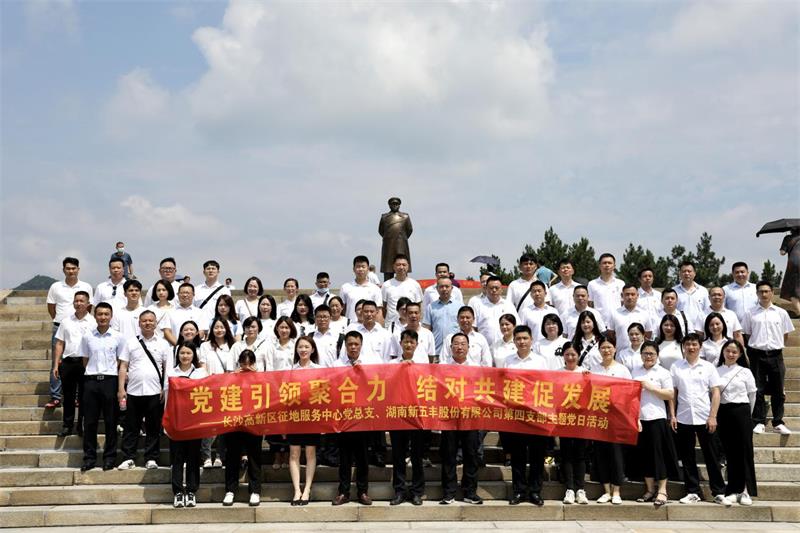 为庆祝中国共产党成立101周年,将党史学习教育引向深入,进一步激发党组织活力,共同喜迎党的二十大胜利召开,6月30日,中共湖南新五丰股份有限公司第四支部联合长沙高新区征地服务中心党总支开展“党建引领聚合力、结对共建促发展”主题党日活动。
