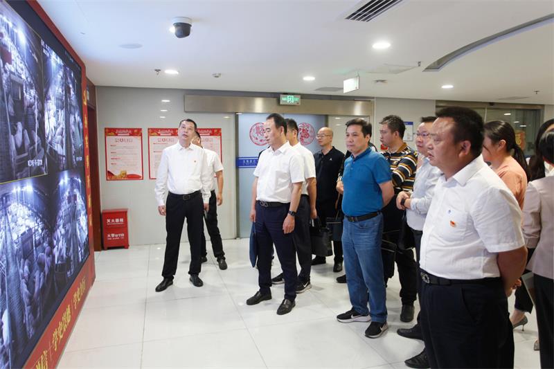 期间,吴年春一行通过新五丰监控系统实时观看了智慧猪场及其它各养殖场的情况。