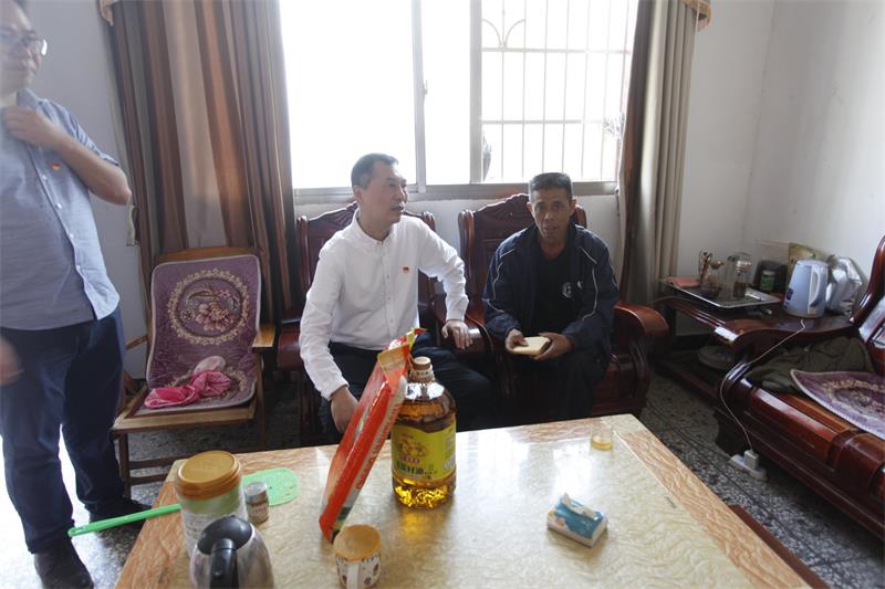 在湖南农业发展投资集团乡村振兴工作队队长喻友培等人的陪同下,何军一行现场察看了竹渚村基础设施和产业发展等情况,在交流中了解乡村振兴情况,并入户开展帮扶慰问。在帮扶对象家中,何军、刘艳书与他们拉起家常,详细询问他们的家庭收入情况、健康状况、子女工作学习情况以及面临的困难,为他们出谋划策,并代表公司党委向他们送去慰问金和食用油、大米等生活物资以及美好的祝愿。
