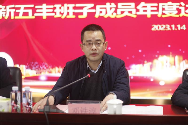 1月14日,湖南新五丰股份有限公司(以下简称“新五丰”)在总部19楼多功能厅召开“2022年度班子成员述职测评考核会议”,湖南农业发展投资集团有限责任公司(以下简称“集团”)总经济师邓铁淳带领党群综合部、组织人事部、纪检室相关人员莅临公司,对新五丰领导班子进行现场考核。