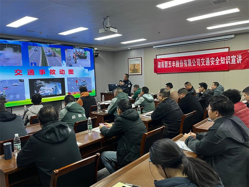 为提高干部职工的交通安全意识,防范交通事故的发生,按照公司相关部署和安委会工作计划,2月12日,湖南新五丰股份有限公司(以下简称“新五丰”)在衡阳事业部组织开展以“细节关乎生命、安全文明出行”为主题的交通安全培训。活动现场参训30人、线上视频参训174人。