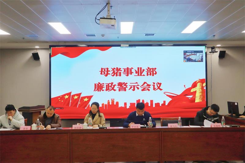 会议组织与会人员集中观看了警示教育专题片,事业部纪检负责人易璐峰通报了2022年以来母猪事业部纪律审查工作情况。