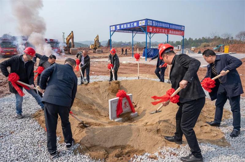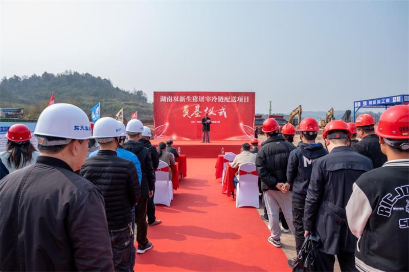 3月1日上午10点38分,湖南双新生猪屠宰冷链配送项目(以下简称“双新项目”)在郴州市苏仙区栖凤渡镇枫树下村举办奠基仪式。苏仙区委副书记文建军,湖南新五丰股份有限公司(以下简称“新五丰”)党委委员、副总经理兼湖南双新食品有限公司董事长毛鸥,湖南省第四工程有限公司党委副书记、总经理肖鹏,以及相关单位人员出席奠基仪式。