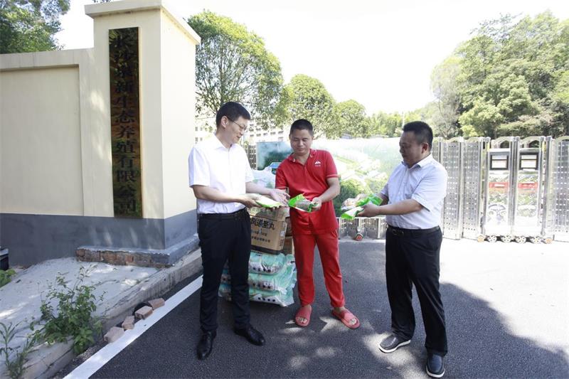 为推进生猪板块高质量发展,做好夏季防暑降温慰问工作,切实保障一线职工生产安全和身心健康,7月28日,湖南农业发展投资集团有限责任公司(以下简称“集团”)党委书记、董事长龚小波到新五丰泉新养殖场调研,并开展“关爱职工·夏送清凉”慰问活动,为一线职工送去清凉与关爱。湖南新五丰股份有限公司(以下简称“新五丰”)党委副书记、副董事长、总经理刘艳书,新五丰党委委员、副总经理、工会主席毛鸥陪同慰问。
