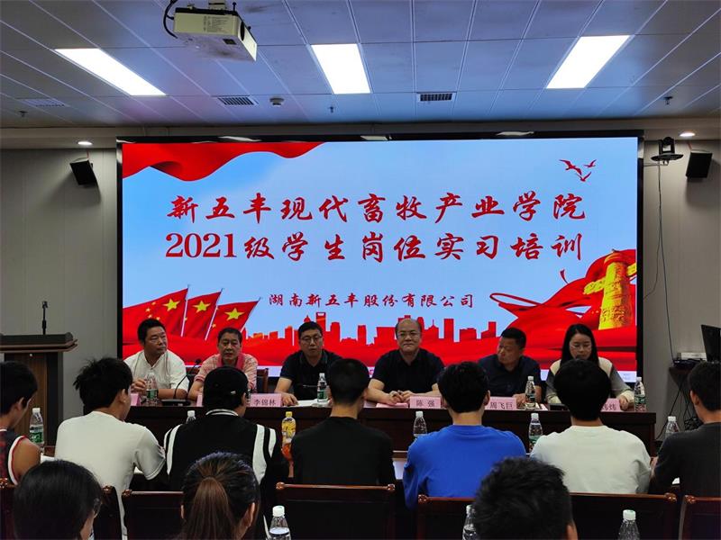 9月2日至3日,由湖南新五丰股份有限公司(以下简称“新五丰”)与永州职业技术学院(以下简称“永州职院”)联合举办的新五丰畜牧产业学院首届2021级45名同学的入司岗位实习培训在新五丰养殖事业部火热举行,两天时间进行了开班仪式、岗前培训、集中授课等环节。