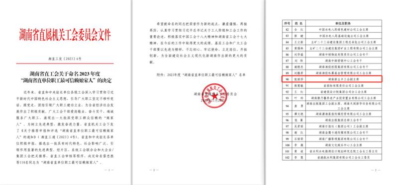 为深入学习贯彻党的二十大精神,深化学习贯彻习近平新时代中国特色社会主义思想和习近平总书记关于加强工会建设的重要指示精神,在广大工会干部中树立典型、表彰先进,近日,湖南省总工会办公室公布了《关于命名2023年度“湖南省职工最可信赖娘家人”的决定》。湖南新五丰股份有限公司工会副主席、党群工作部副部长张丽莎同志获评“湖南省职工最可信赖娘家人”荣誉称号!