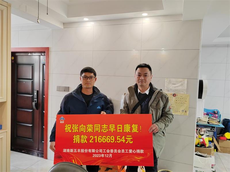 病魔无情人有情,浓浓关爱显真情。12月14日,湖南新五丰股份有限公司(以下简称“新五丰”)党委委员、监事会主席、工会主席毛鸥一行走访慰问患病职工张向荣,为他送去关爱祝福和爱心捐款。