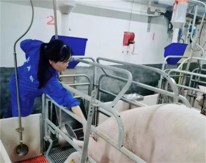 22年8月入职晟峰一期一线的姚正分,产房的人亲切称呼其为姚大姐,姚大姐对新人倾囊相授,私下里更是对新员工照顾有加,姚大姐说:“每天尽心尽力教授他们生产线的工作技巧,总是希望他们尽早学会,看到他们学有所成,真心为这些新人感到高兴”。在她和同事们的精心呵护下,一期一线断奶发情率一直稳定在85%以上。
