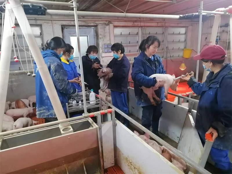 工欲善其事,必先利其器。为了让员工更快熟悉各项生产流程,晟峰场采取老带新的模式,对刚刚进入养殖行业的“小白”手把手教学、培训,每周定期开展现场实操演练,教新员工调料、查情、配种、冲宫等工作。2023年,仅是从技术员岗提干到主管岗的同志就有五位。