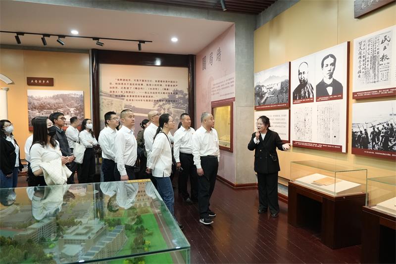 大家饶有兴致地参观了城南书院校区,这里长廊迂回,连接起大礼堂、八班教室、八班寝室、水井、自习室、阅报室、“一代伟人从这里起步”主题陈列展厅等十多个红色纪念地,一草一木、一砖一瓦皆由岁月雕琢,宛若一本鲜活厚重的红色教科书。上个世纪初,青年毛泽东在湖南第一师范学院求学、任教,度过了8个春秋,与蔡和森、罗学瓒等人探求救国救民真理,传播马克思主义学说、组织新民学会、创建共产党早期组织、谋划参加中共一大,走上了革命道路。他题写的诗词文章和朴实的学习环境,铸就了校园里最鲜亮的红色基因。大家沿着青年毛泽东成长的足迹,共同追忆他的求学生活和革命故事,感悟一代伟人及革命前辈们探求人生真理,自觉投身革命事业,为民族独立、人民解放和国家富强不懈奋斗的崇高精神和家国情怀。