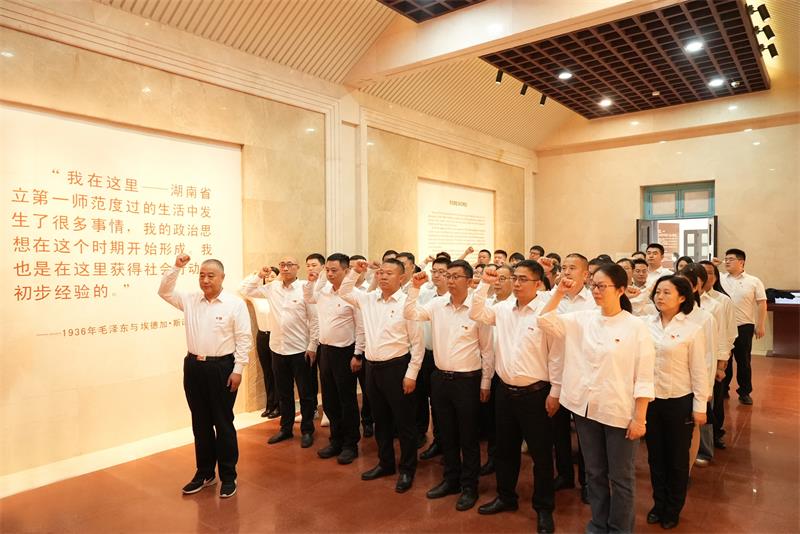 为深入学习贯彻习近平总书记在湖南考察时的重要讲话和指示精神,引导党员干部坚持不懈用习近平新时代中国特色社会主义思想凝心聚魂,在深学细悟中理清思想脉络,在融会贯通中掌握精髓要义,在狠抓落实中彰显责任担当,3月30日,湖南新五丰股份有限公司(以下简称“新五丰”)领导班子成员,总部各党支部、优鲜公司党支部全体党员前往湖南第一师范学院(城南书院校区)开展“赓续红色血脉 汲取奋进力量”主题党日活动。