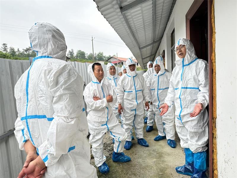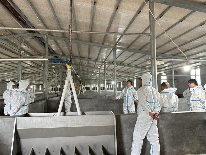 期间,李锦林一行来到邵阳代养户王小艳的养殖基地,现场检查了物资消毒间、洗澡通道、洗消房、生产区等区域,仔细查看设备设施的安全规范操作和防疫措施落实情况,并与服务部负责人、代养户深入交流,对人员、车辆、物资、饲料管理,以及生产情况进行全面了解,并将检查过程中发现的不足之处交办相关负责人并叮嘱要限期整改到位。他督促代养户一定要积极应对即将到来的高温天气给生产工作和生物安全带来的挑战,将各项疫病防控措施执行到位,坚决消除一切风险隐患,筑牢“安全防护网”。