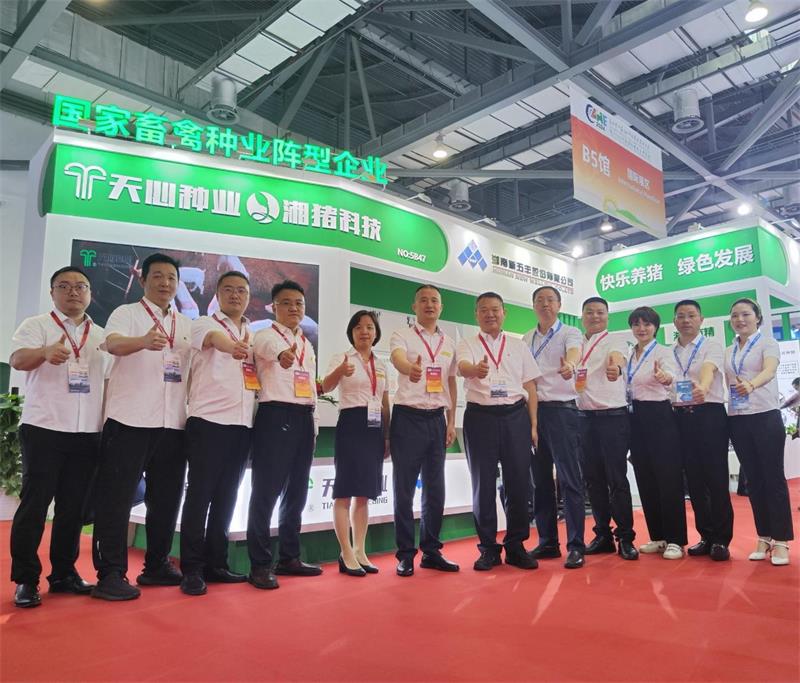作为国家畜禽种业阵型企业,湖南农业集团旗下湖南新五丰股份有限公司(以下简称“新五丰”)、湖南天心种业有限公司(以下简称“天心种业”)、湖南湘猪科技股份有限公司(以下简称“湘猪科技”)三家企业联合参展畜博会,并选派近二十人的专业团队赶赴现场,向中外客人隆重推荐天心牌种猪、湘猪科技猪精及新五丰优质仔猪和商品肥猪等核心产品。