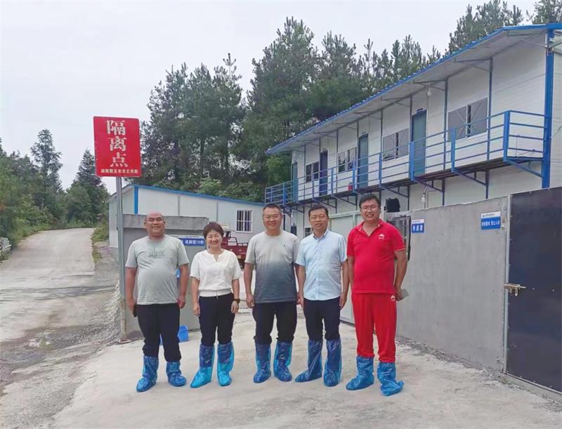 为进一步强化高温雨季天气非洲猪瘟等动物疫病防控工作,切实保障公司生产安全和职工身心健康,督促做好防暑降温工作,7月9日至13日,湖南新五丰股份有限公司(以下简称“新五丰”)党委副书记、副董事长、总经理朱永胜赴益阳、常德、湘西和怀化等地区,先后对公司所属15家养殖场和1家饲料厂开展调研,新五丰党委委员、天心种业党总支书记、总经理龚自冶陪同。