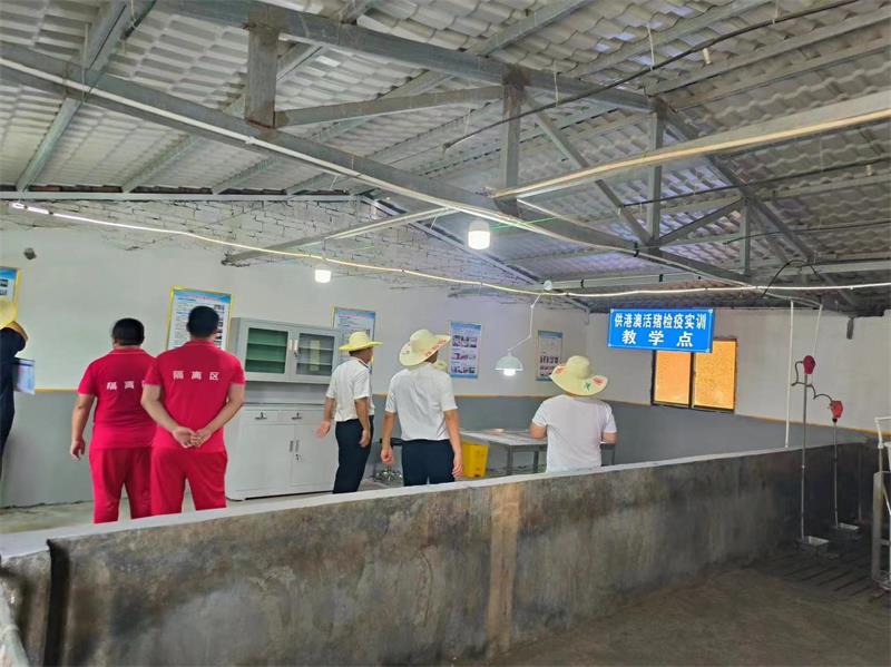 香港食环署一行实地考察了养殖场出口隔离栏舍,通过监控系统实时观看了栏舍猪群健康状况,听取了养殖场负责人对场区情况的全面介绍,并对养殖场的追溯管理、饲养管理、疫病防治、日常卫生管理等情况进行了详细检查并拍照存档。