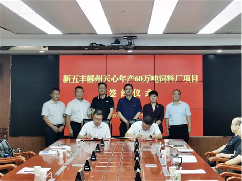 7月27日,苏仙区人民政府与湖南新五丰股份有限公司(以下简称“新五丰”)就新五丰郴州天心年产60万吨饲料厂项目举行签约仪式。湖南农业集团党委委员、副总经理李恒毅,新五丰党委副书记、副董事长、总经理朱永胜,苏仙区委书记吴文明出席活动并讲话。