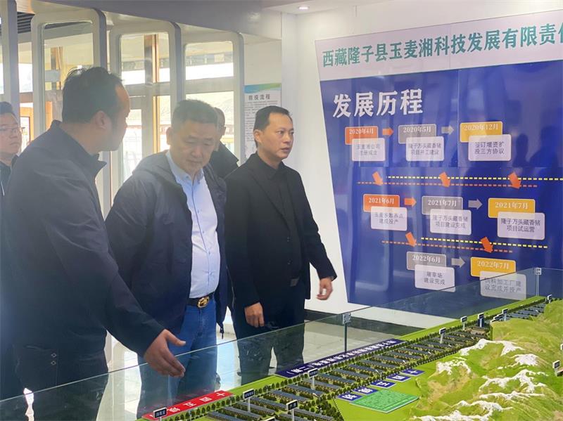在玉麦湘公司,喻自文观看了玉麦湘藏香猪品牌宣传片,并通过实时监控查看藏香猪养殖情况,在交流中了解当地藏香猪产业和玉麦湘公司经营状况。他表示,玉麦湘作为西藏规模最大的藏香猪标准化养殖基地,依托新五丰成熟、科学的养殖体系,为盘活隆子县藏香猪产业和促进当地经济发展作出了突出贡献。而同为上市企业的湘佳牧业,拥有非常成熟的市场销售网络体系和供应链体系,期待与新五丰在藏香猪产业领域开展深度合作,将优质的藏香猪肉推向更为广阔的市场,为壮大西藏特色优势产业贡献力量。