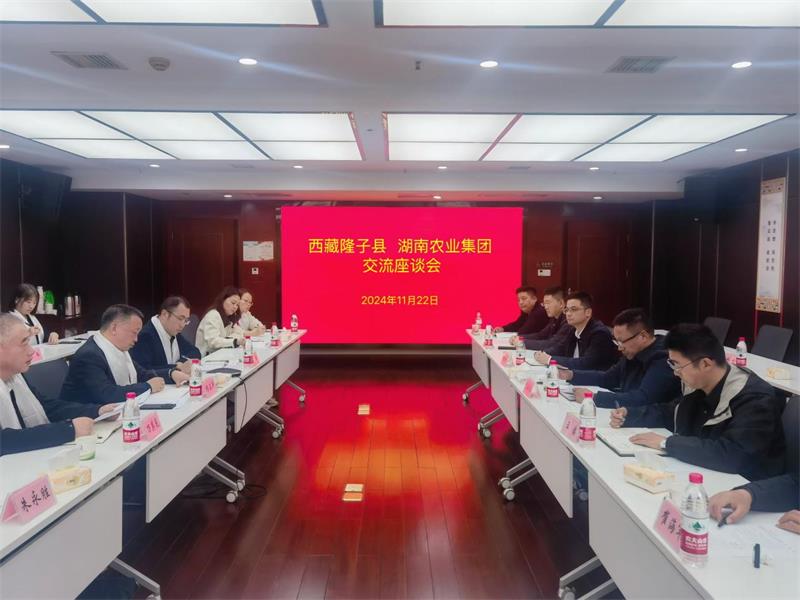 11月22日,西藏隆子县委副书记、县长巴桑次仁一行到湖南农业集团考察交流,县委常务副书记、常务副县长熊世成,集团党委副书记、副董事长、总经理杨正华,党委委员、副总经理龚自冶参加座谈会。