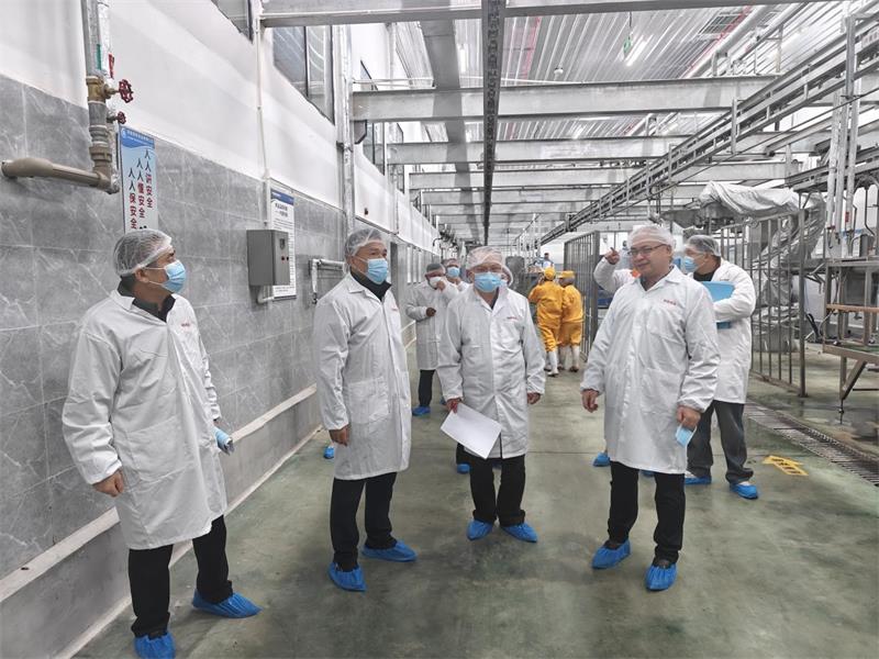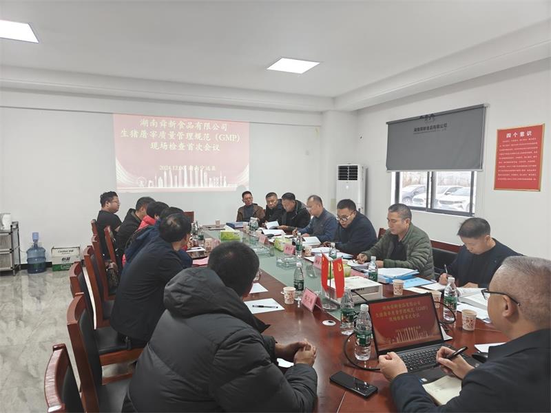 12月6日,由湖南省畜牧水产事务中心二级调研员桑绍明带队的检查组前往湖南舜新食品有限公司(以下简称“舜新公司”)进行生猪屠宰质量管理规范现场检查。永州市农业农村局副局长高宏华,宁远县相关部门领导,舜新公司总经理葛汉根陪同检查。