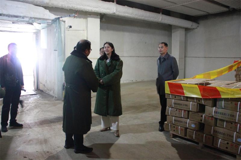 金甜一行先后走访了生猪屠宰生产车间、肉品分割车间及中央储备冻肉专库,详细了解企业生产经营、生猪屠宰流程、市场保供稳价等情况。参观过程中,金甜与大家深入交流,重点询问了企业当前面临的困难与挑战,并现场就安全生产管理、冷链物流保障、市场供需平衡等环节提出了指导意见。