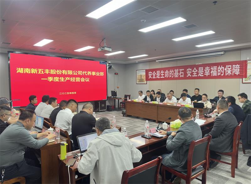 4月8日,湖南新五丰股份有限公司(以下简称“新五丰”)代养事业部召开第一季度生产经营会议,全面总结一季度工作成效,部署下一阶段重点任务。新五丰党委副书记、副董事长、总经理朱永胜出席会议并讲话,新五丰总经理助理、代养事业部总经理李锦林主持会议。