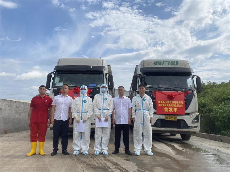 5月20日,湖南新五丰股份有限公司(以下简称“新五丰”)所属祁阳大村甸生产基地“生猪供港澳出口”首发仪式在永州举行,标志着湖南优质农产品出口再添新篇章。永州海关监管稽核科科长雷洪哲,新五丰党委委员、副总经理韩伟参加仪式。