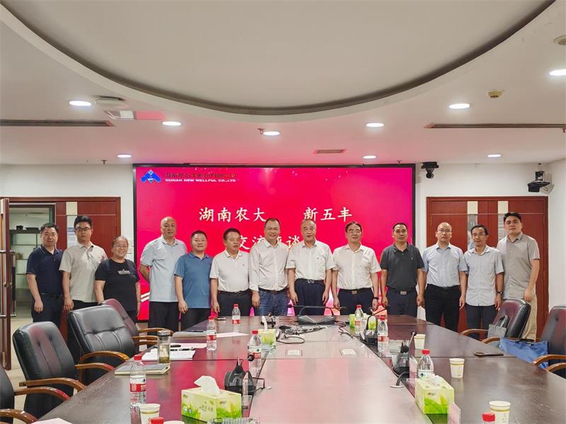 6月9日,湖南农业大学动物科技学院院长贺喜,党委书记祖智波,党委副书记、副院长周军铁,副院长何俊等一行到湖南新五丰股份有限公司(以下简称“新五丰”)开展交流座谈,湖南农业集团总畜牧师刘艳书,新五丰党委书记、董事长万其见,集团科技创新部部长齐志刚参加。