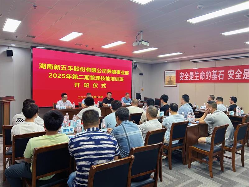 为深入贯彻落实习近平总书记关于做好新时代人才工作的重要思想,持续深化“人才强企”战略,进一步提升养殖板块干部的综合管理能力,8月11日,湖南新五丰股份有限公司(以下简称“新五丰”)养殖事业部举办2025年第二期干部管理技能专题培训班。新五丰党委委员、养殖事业部总经理唐威出席开班仪式并作动员讲话,来自事业部各大区的40余名生产管理骨干参加培训。