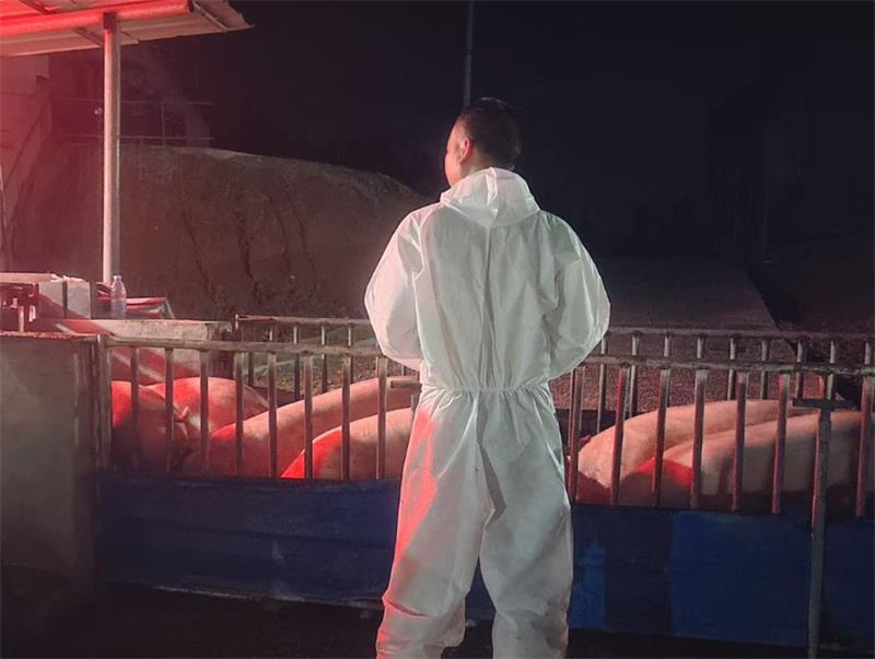 在推动场区非瘟防疫工作持续改进方面,刘义则担当了“智多星”的角色。消毒设备的摆放位置如何更便于操作,人员行走路线如何规划更能减少交叉污染,防疫物资的申领、存储流程如何优化才能确保应急供应,这些防疫工作中经常遇到的问题促使他积极思考、精心部署,以高效协同的流程节点提高场区防非综合水平。他坚持“预防为主”的核心理念,不仅自己严格执行各项防疫规定,还经常利用晨会、工作间隙等机会,结合实际案例向同事们宣讲非瘟病毒的危害性和防控的重要性,提醒大家时刻绷紧防疫这根弦,做好日常消毒和个人防护。他强调,无论是生产栏舍、工具器械还是公共区域,都要严格按照规定进行定期清洗,确保消毒工作真正落到实处,推动“生物安全至上,防疫人人有责”的意识深入人心,形成了王飞养殖场“人人讲防疫、事事为防疫、时时想防疫”的良好氛围。