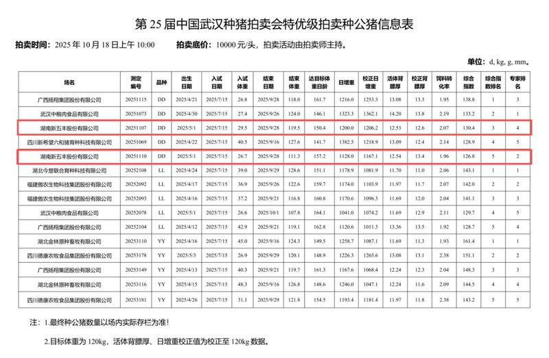 日前,2025年中国农民丰收节系列活动暨全国种猪大赛(湖北赛区)暨第25届中国武汉种猪测定成绩揭晓,由新五丰选送的两头杜洛克种公猪以“130.4和126.8的综合指数”强势突围,分别荣获专家排名第二、第四名次的优异成绩,成功彰显了新五丰在猪育种领域的强大实力。