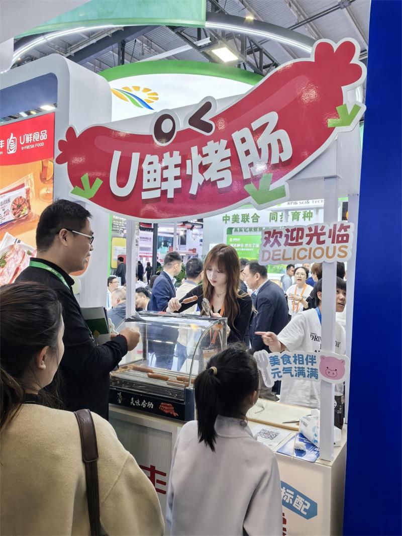 新五丰不仅注重猪苗的先天健康与生长性能,更致力于构建从种猪育种、饲料营养、健康管理到食品安全的全程可控产业链。本次展会上,新五丰所属“优鲜”品牌推出的法式香肠等深加工产品,凭借独特的风味也受到现场观众的青睐,体现出公司从“养猪”到“卖肉”再到“打造深加工产品”的跨越式发展。
